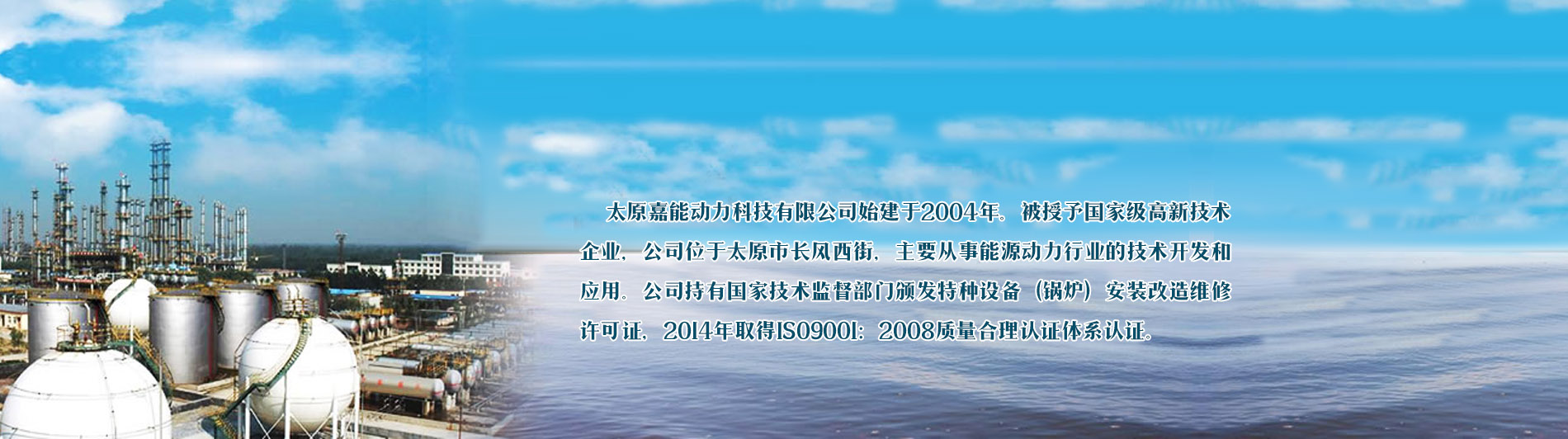 太原嘉能動(dòng)力科技有限公司始建于2004年。公司位于太原市長(zhǎng)風(fēng)西街50號(hào),主要從事能源動(dòng)力行業(yè)的技術(shù)開發(fā)和應(yīng)用。并被授予高新技術(shù)企業(yè)。自公司成立以來,先后取得了****技術(shù)監(jiān)督部門頒發(fā)特種設(shè)備(鍋爐)安裝改造維修許可證;特種設(shè)備(B級(jí)鍋爐)制造許可證;特種設(shè)備(R1、R2級(jí)壓力容器)制造許可證。是低品位余熱利用和鍋爐改造的專業(yè)公司,已擁有十多項(xiàng)專利,目前在全國(guó)處于領(lǐng)先地位